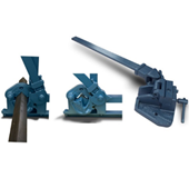 The No. 50 Angle Iron Notcher is a useful tool for notching or coping angle iron. It can be used in the shop or on the job site. Coping and special degree notching blade and dies are available.