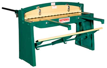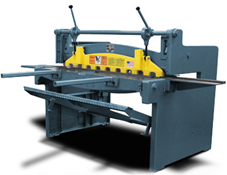 Shear incorporates a gap-in-housing feature which permits slitting a sheet of any length (by successive cuts) up to 18” wide. Gauging is similar to Pexto Shear No. 152 but also has an adjustable side slitting gauge. Includes a lever actuated holdout, finger guard and treadle stops.