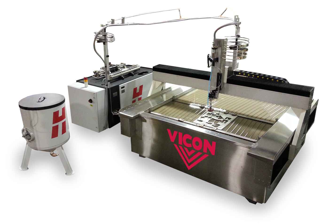 This newly developed machine is equipped with Hypertherm HyPrecision Intensifier capable of cutting materials up to 4” with extremely accurate tolerances. This system is based on newly developed gantry and motion system, along with the recently enhanced electronics and Vicon Control software. The system is available in 5' x 5' or 5' x 10' models.