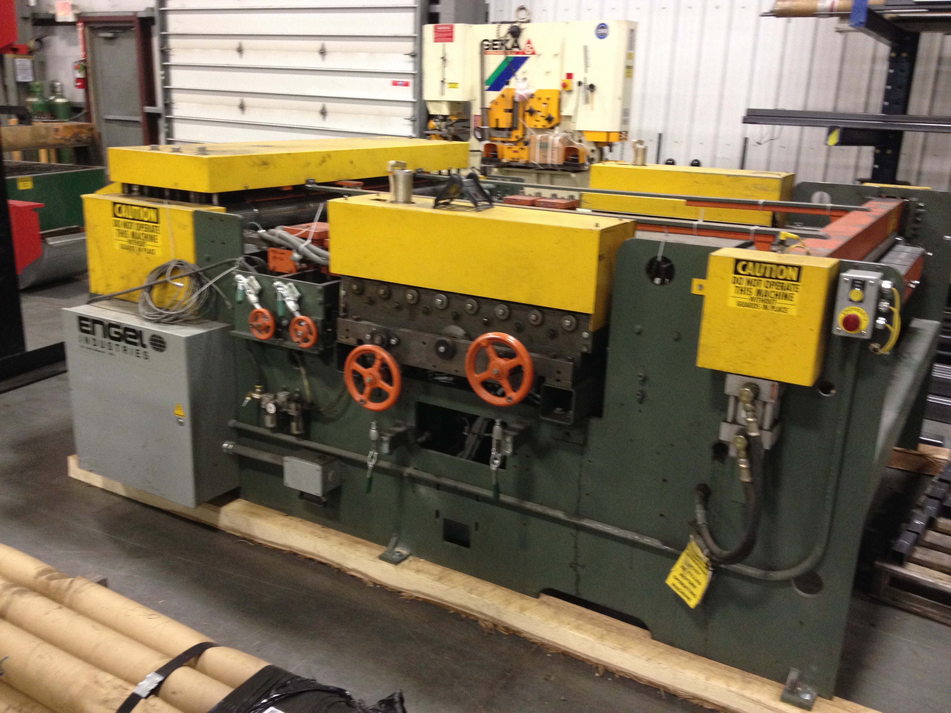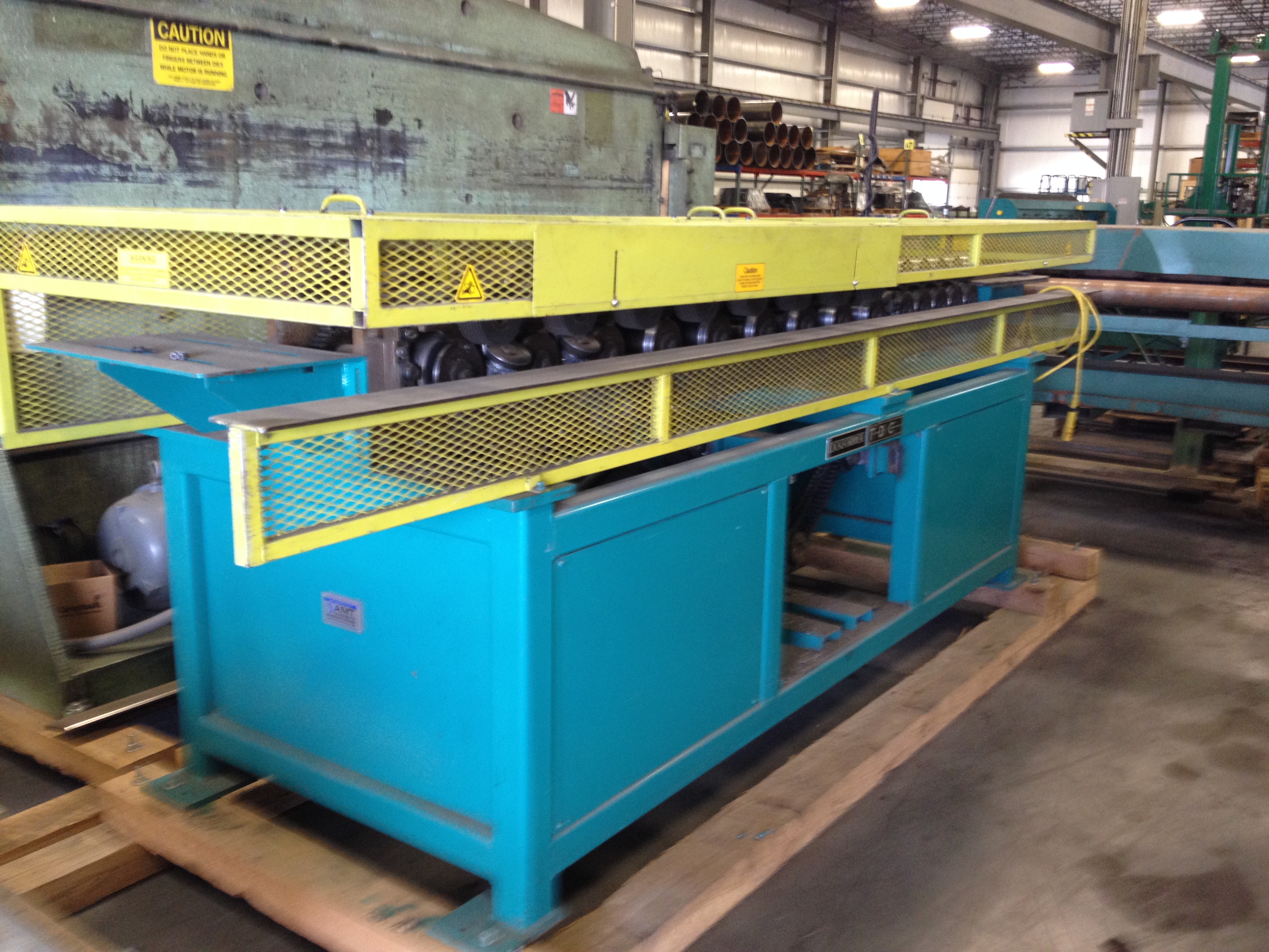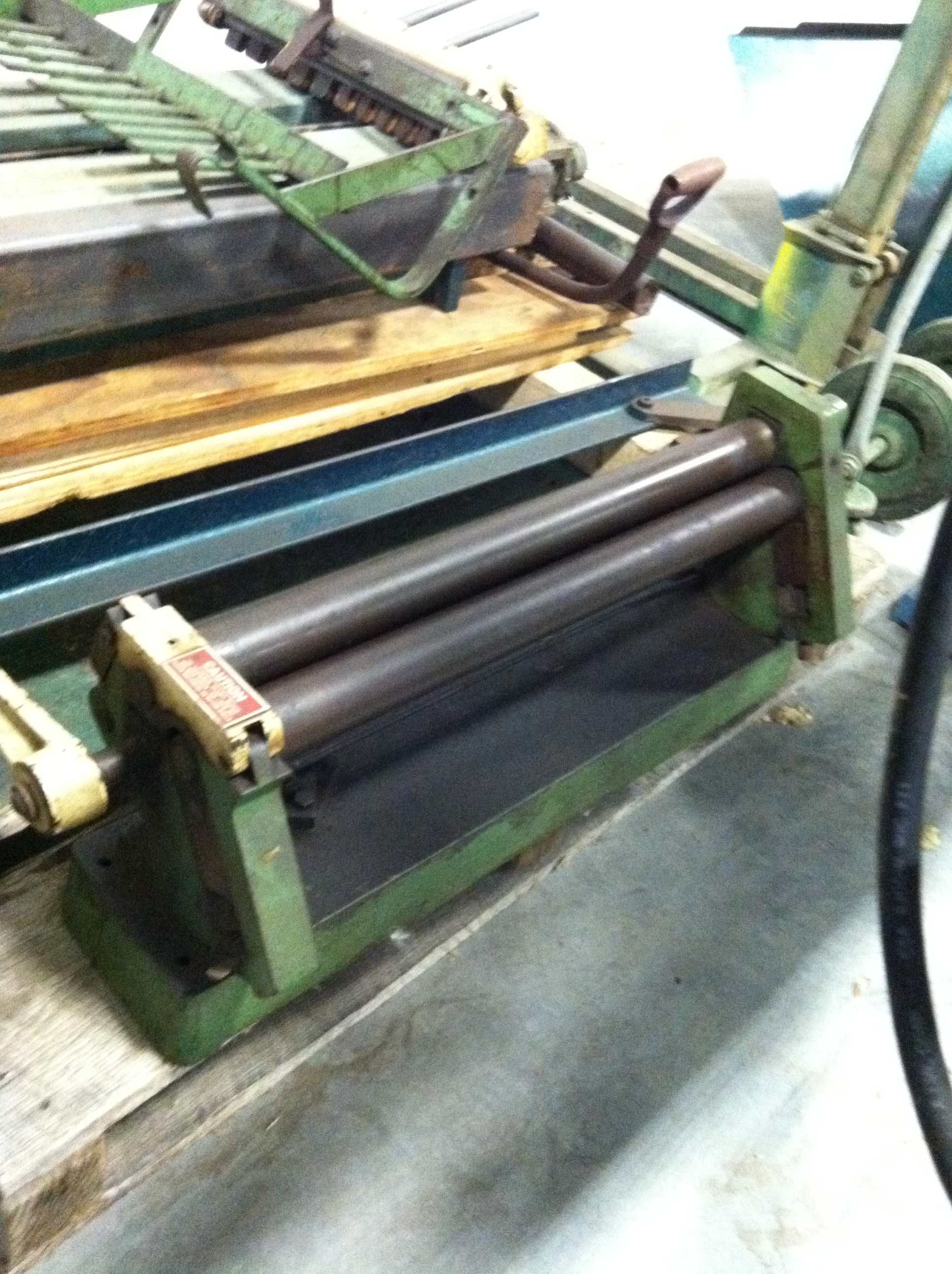 Hydraulically Powered Four Roll Straightener with 4 1/4" Diameter Rolls. Material Size: 60" 16 Gauge Mild Steel Minimum Size: 6" x 6" unlined Max Wrap: 120" Beads, Notches, Shears, Folds Bends Male Leg of Lock Seam